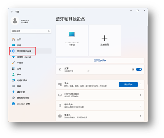 2.2. 选择“蓝牙和其他设备”以打开“蓝牙和其他设备”页面。
