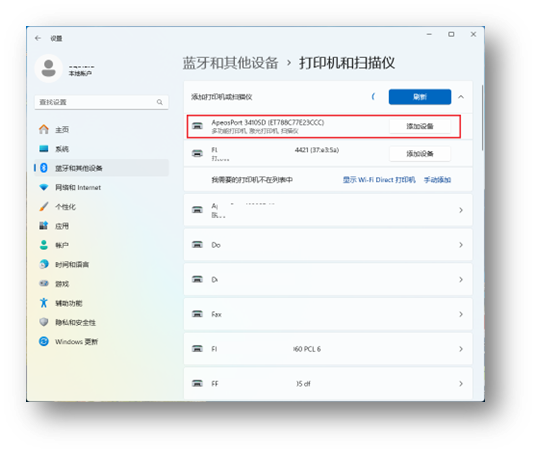 2.5. 从搜索结果列表中,为目标打印机选择“添加设备”。